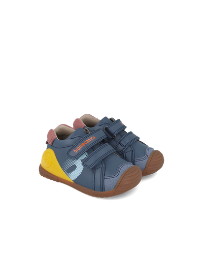 Petrol blue double velcro sneaker prewalker with caramel sole