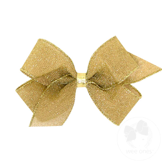 This textured bow is the ultimate party bow adding just the right amount of glimmer and sparkle to her special outfit. Available in gold, silver, red and green. These bows are sure to stay in her hair all day with our patented WeeStay™ no-slip hair clip.