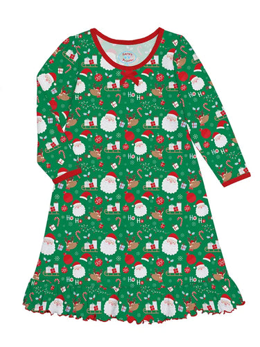 Green HO HO HO Whirl-And-Twirl Long-Sleeve Nightgown