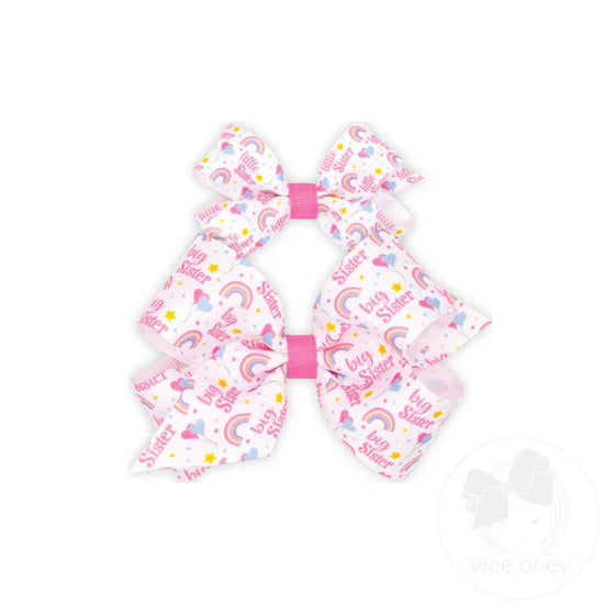 One Mini "Lil sis" and One Medium "Big Sis" Printed Grosgrain Hair Bow