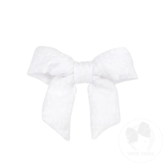 This Genuine Seersucker Fabric Bowtie with Tails brings timeless summer style to your little one’s look, adding a light and breezy touch perfect for warm days. Soft and classic, it’s the must-have accessory for sunny adventures. This bow is sure to stay in her hair all day with our patented WeeStay™ no-slip hair clip.