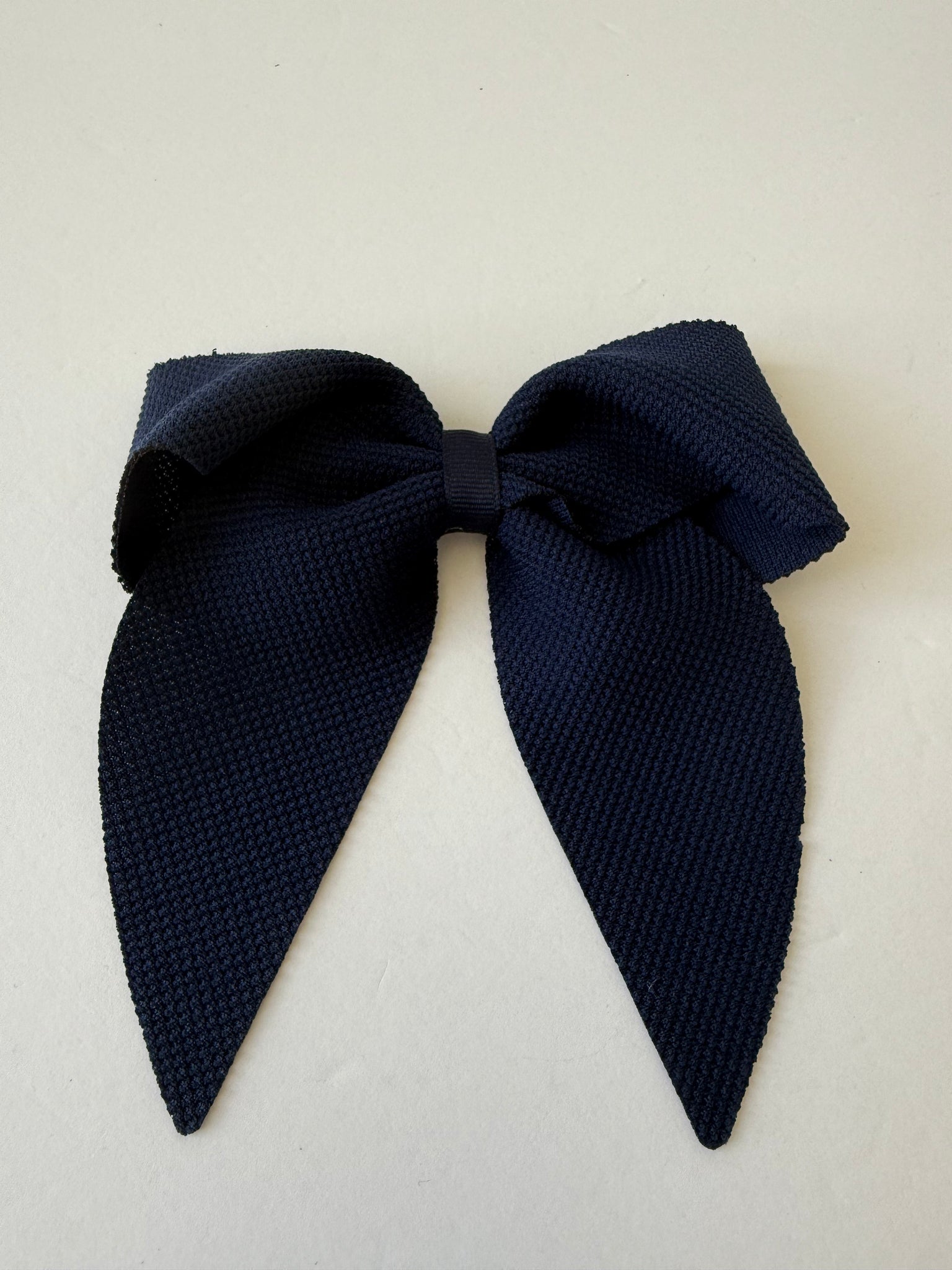 Add a touch of whimsy to your little one's wardrobe with our medium textured knit bowtie. Perfect for everyday wear or dressing up for mommy and me looks. The whimsy tails are 4 1/2 inches in length. This bow is sure to stay in her hair all day with our patented WeeStay™ no-slip hair clip. Available in a variety of colors.