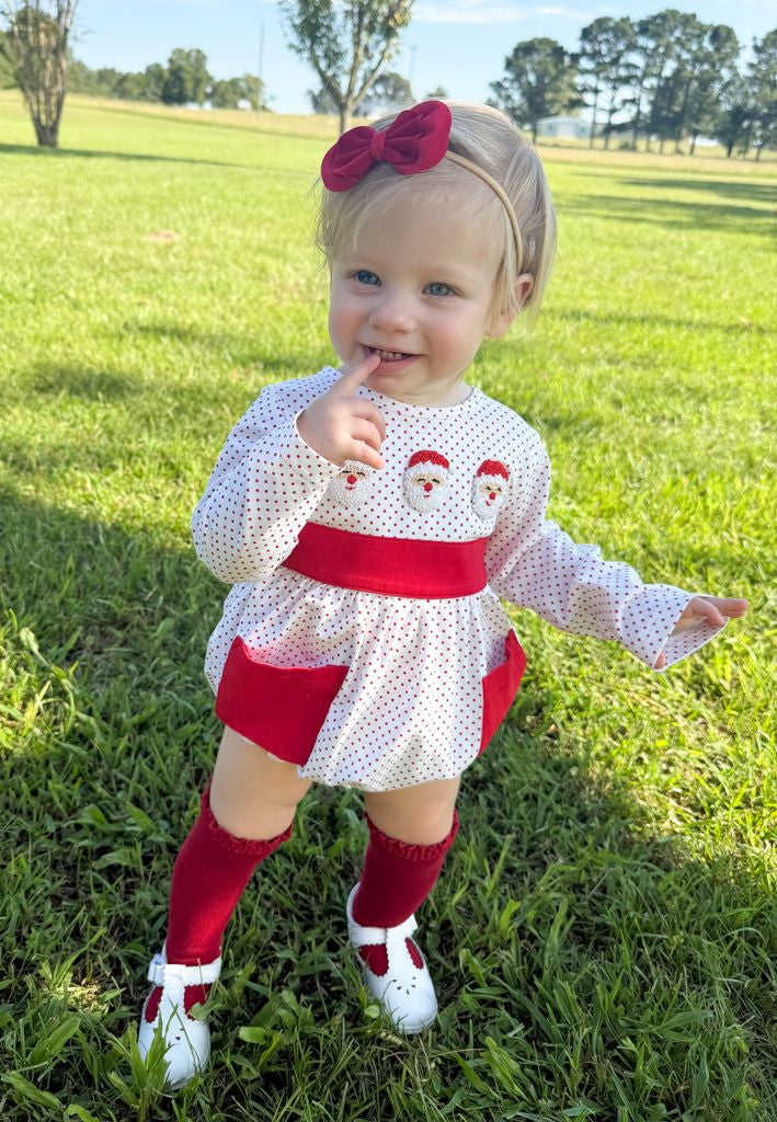 The perfect holiday outfit finishing touch! An adorable soft velvet bow with a nude band to match any special occasion. One size fits 3 months and up.