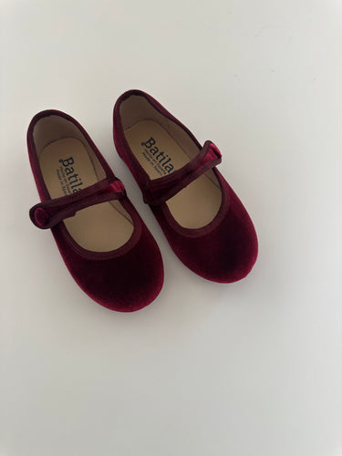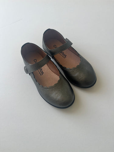 Children's shoes secured by a strap over the instep and fastened with a buckle or button.