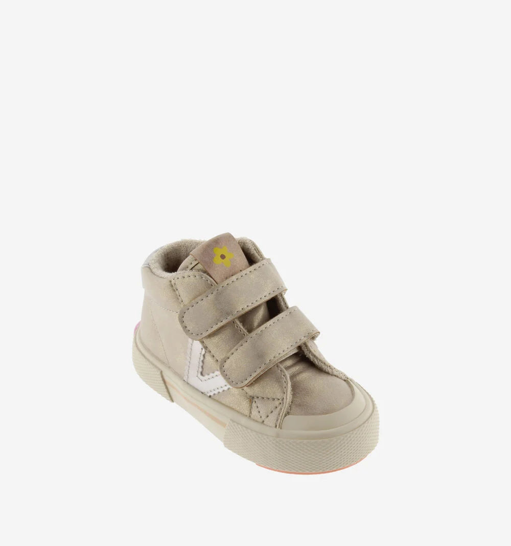 Girls ankle boots. Made in faux leather with the logo on the side and back in glitter, for a touch of fantasy. Metallic panels and two-tone sole with matching line at the back and on the tongue. Fasten with two straps to make them easier to get on and off, and a reinforced rubber toe for added durability. They also come with a high-density insole for improved comfort.