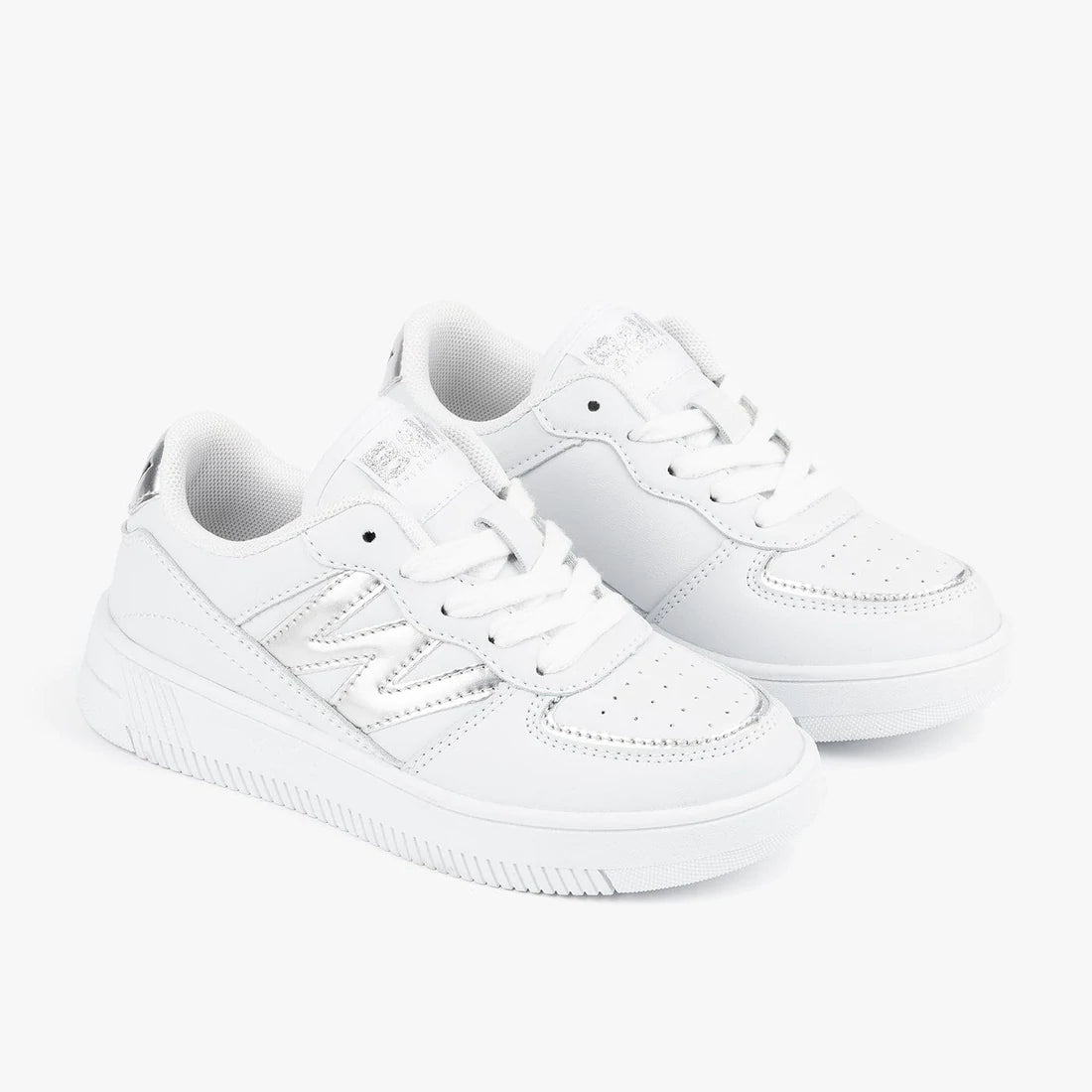 White metallized basic sneaker with silver detail