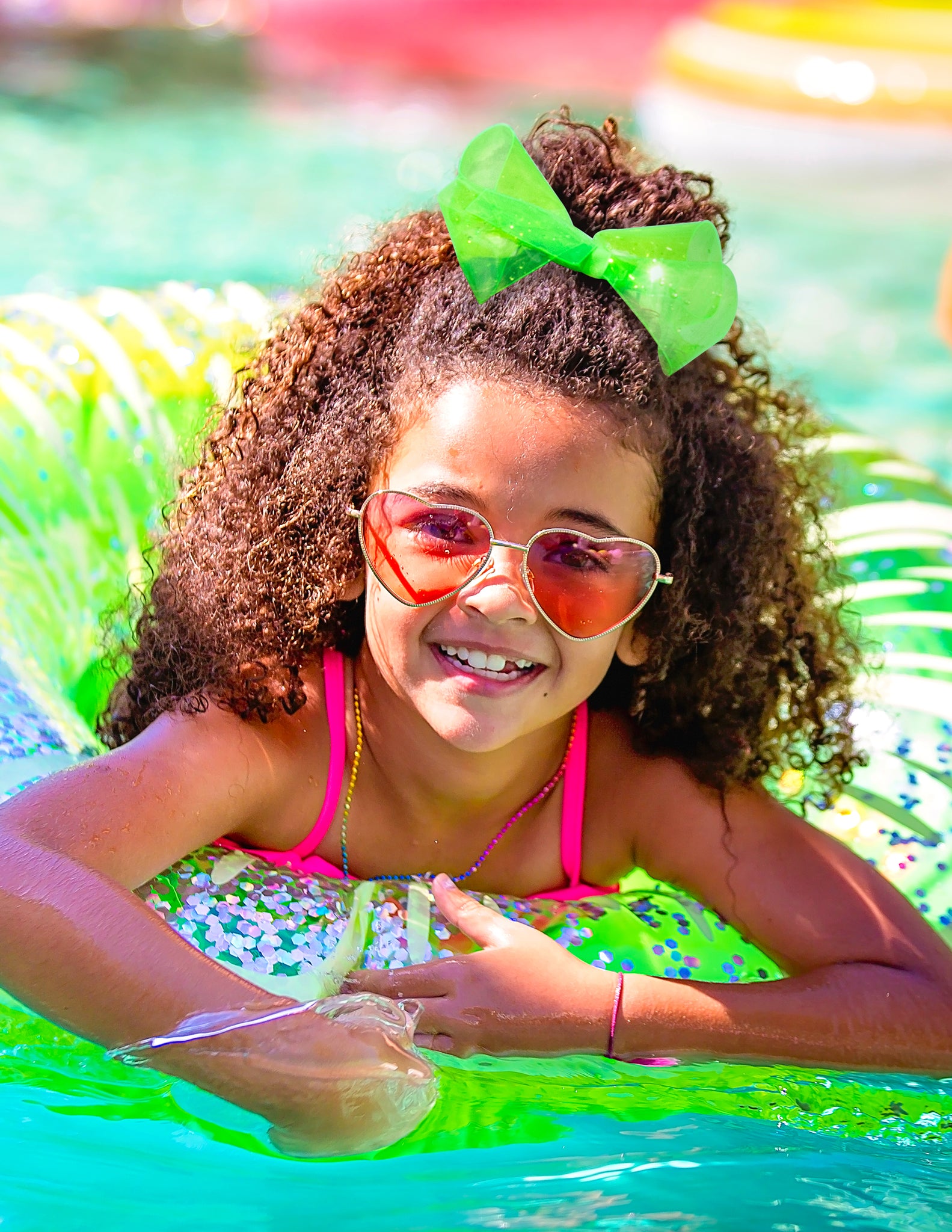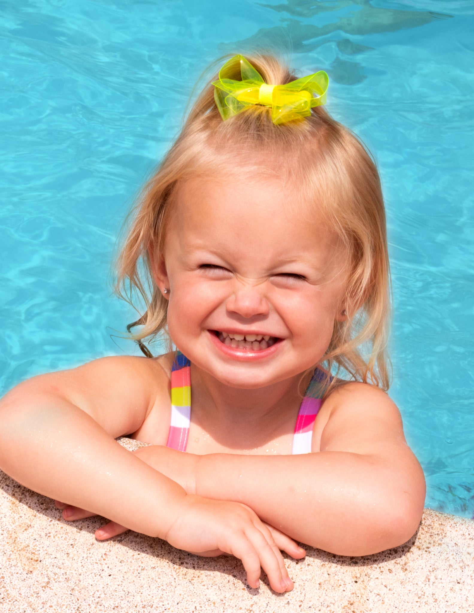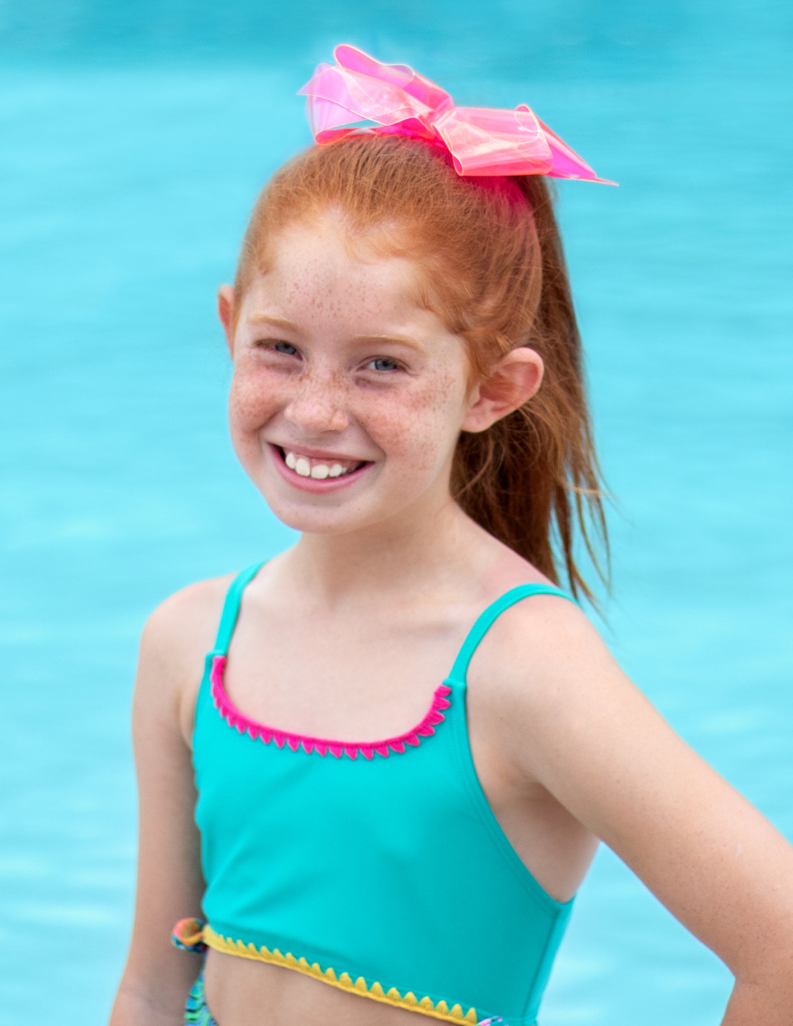 Make waves splashing around at this summer's pool party with our vibrant-colored vinyl hair bow for girls. This bow is sure to stay in her hair all day with our patented WeeStay™ no-slip hair clip. This is the perfect hair bow to capture those summer time insta shots!